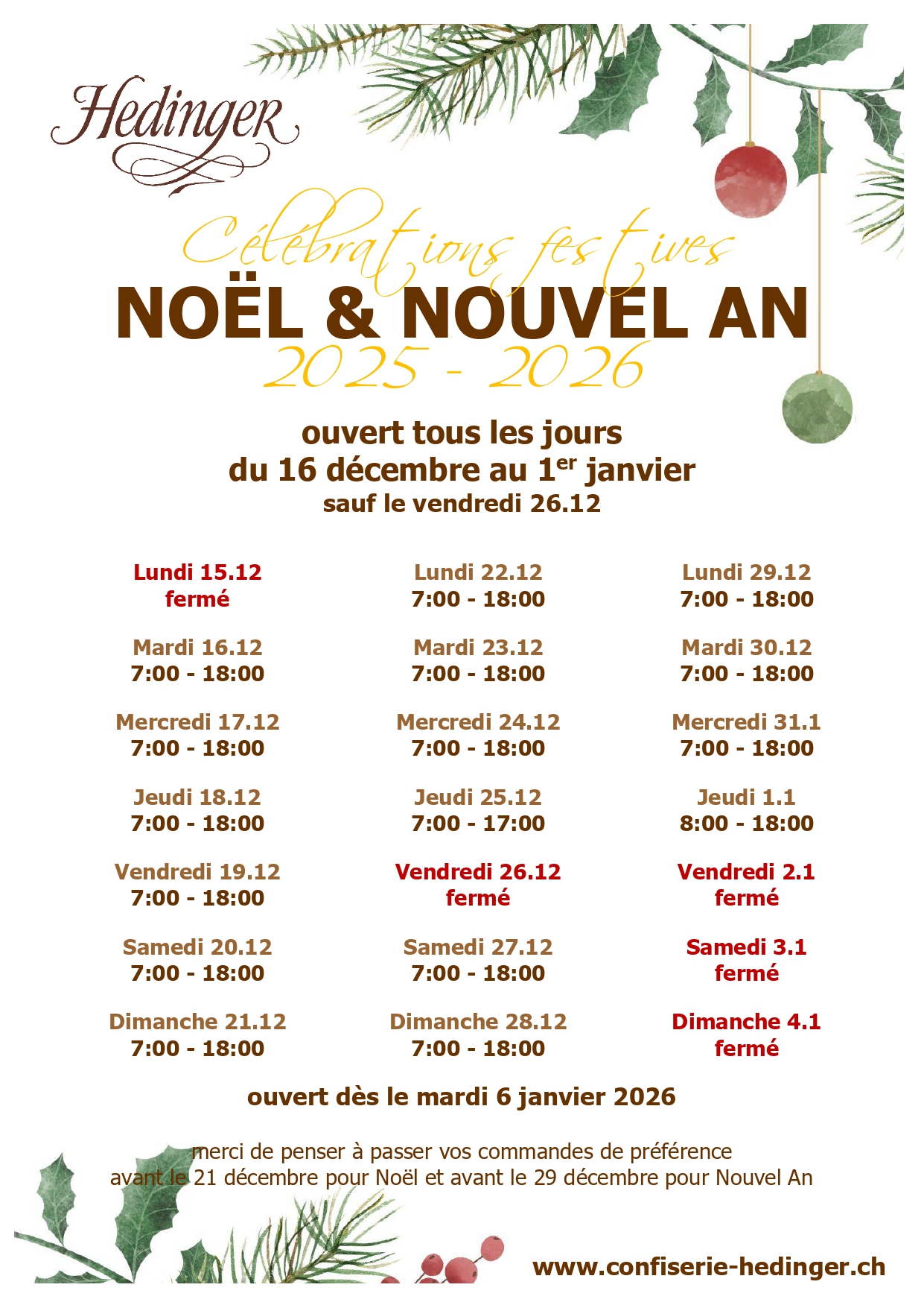 29 décembre 2021 Horaires pour le Nouvel An 2021-22 Actualités By Rahel Isenschmied Nous nous réjouissons de vous accueillir ces prochains jours: nous sommes ouverts le 31 décembre, le 1er et le 2 janvier 2022. Share